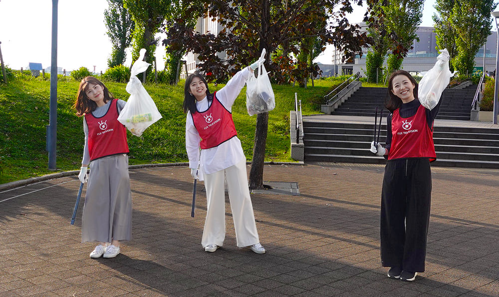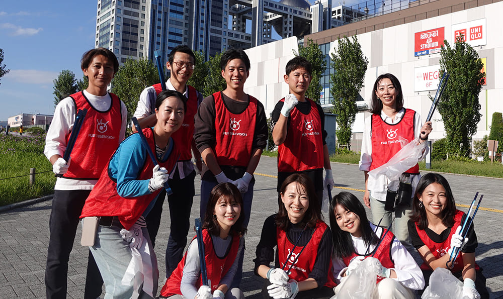 臨海副都心に事業所がある会社や団体で構成されている「東京臨海副都心まちづくり協議会」では、環境関連事業として定期的に「清掃キャンペーン」を行っており、フジテレビも毎回参加をしています。