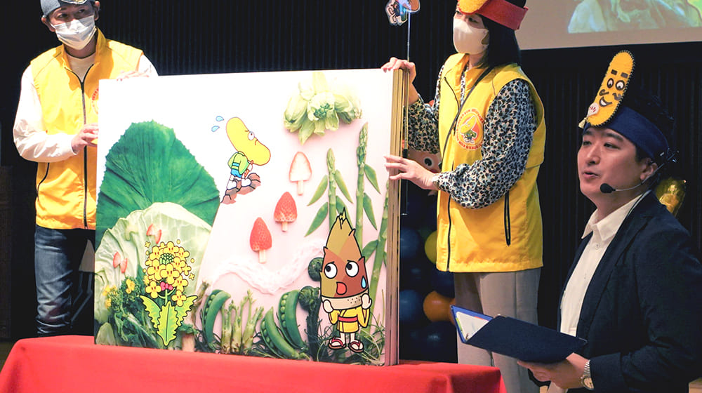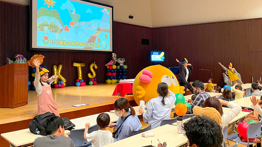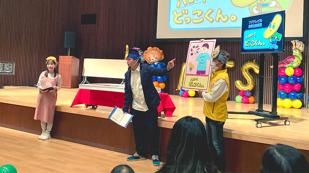 4月23日、昨年に引き続き鹿児島テレビの「KTSすこやかふれあいフェスティバル2023」のステージイベントとして食育出前授業『ハロー!どっこくん。』を開催しました。
