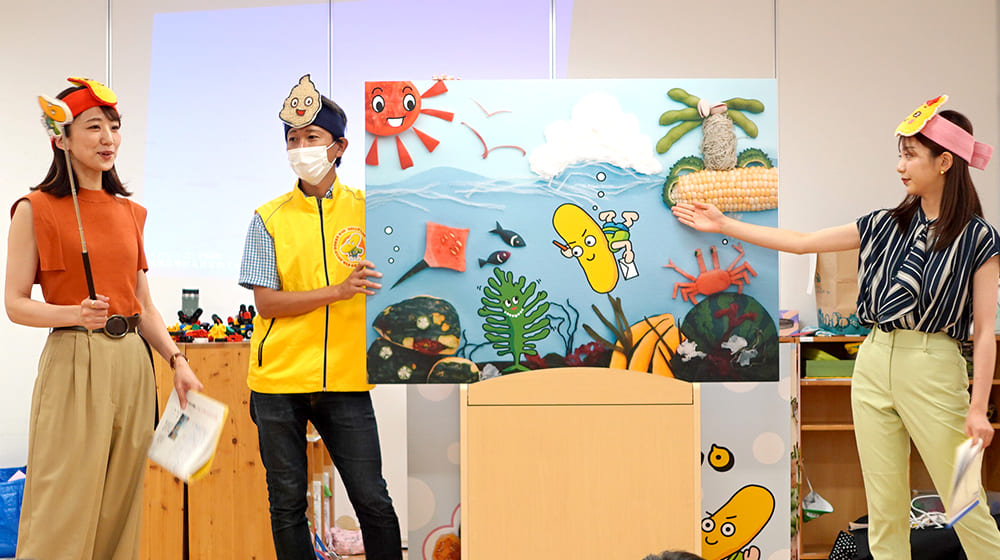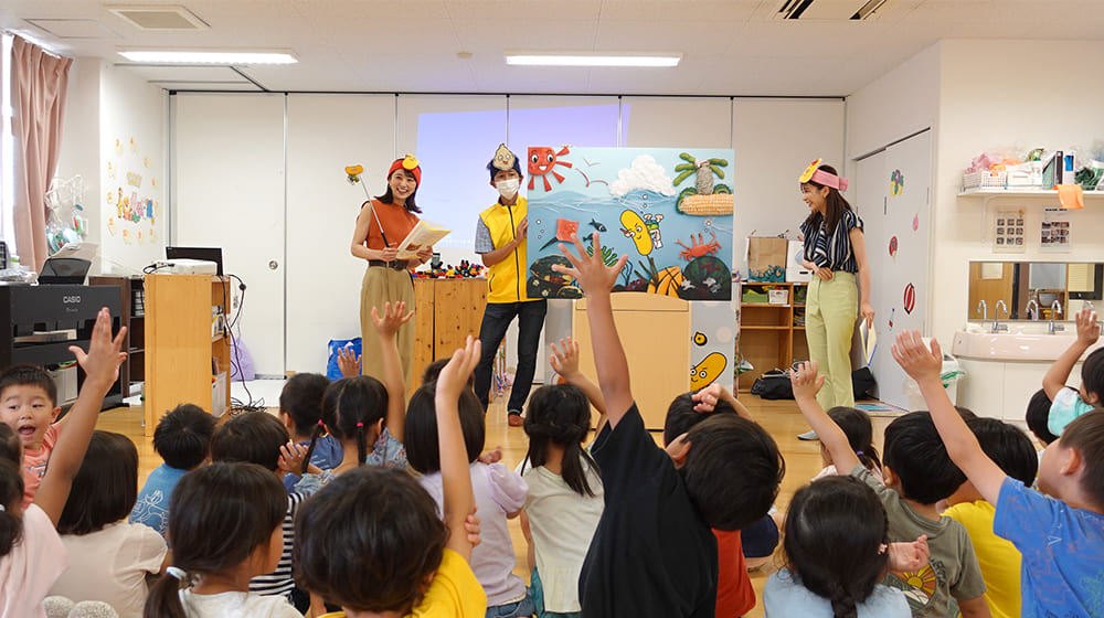 紙芝居では、真剣な眼差しで話を聞き、積極的に参加する姿も。私が想像していた以上に園児たちの食への関心が高く、驚きました。ならば、もっと興味を持ってもらうためにはどうすればいいのだろうか。もっと楽しんでもらいたい!そんなふうに、気づけば自分の熱も高まっていきました。