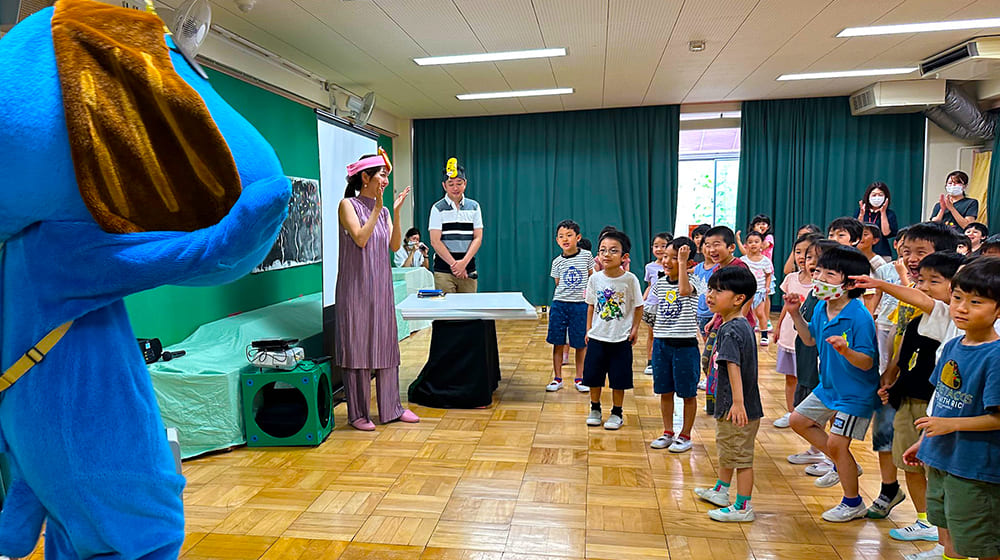 年少さんから年長さんまで、120人ほどのかわいい子どもたちが、ちょっぴり緊張気味で出迎えてくれました。