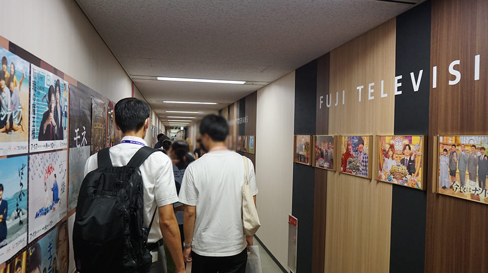 まず、フジテレビに集まった参加者たちがタレントクロークの前の廊下に飾られた番組の宣伝写真を見ながら進むと・・・現れたのは宮司愛海アナウンサー。生放送前にたまたま通りかかった宮司アナに、「かわいい!」と参加者は興奮した様子でした。