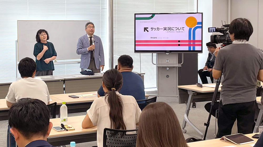 聴覚ハンデゆえに、われわれの実況を聞きながらのスポーツ観戦経験はナシ。でも、手話通訳での実況直訳では間に合わないし、字幕だと感情や熱が伝わらない。ならば自分たちで、「手話という言語での実況」をしてみよう、と。