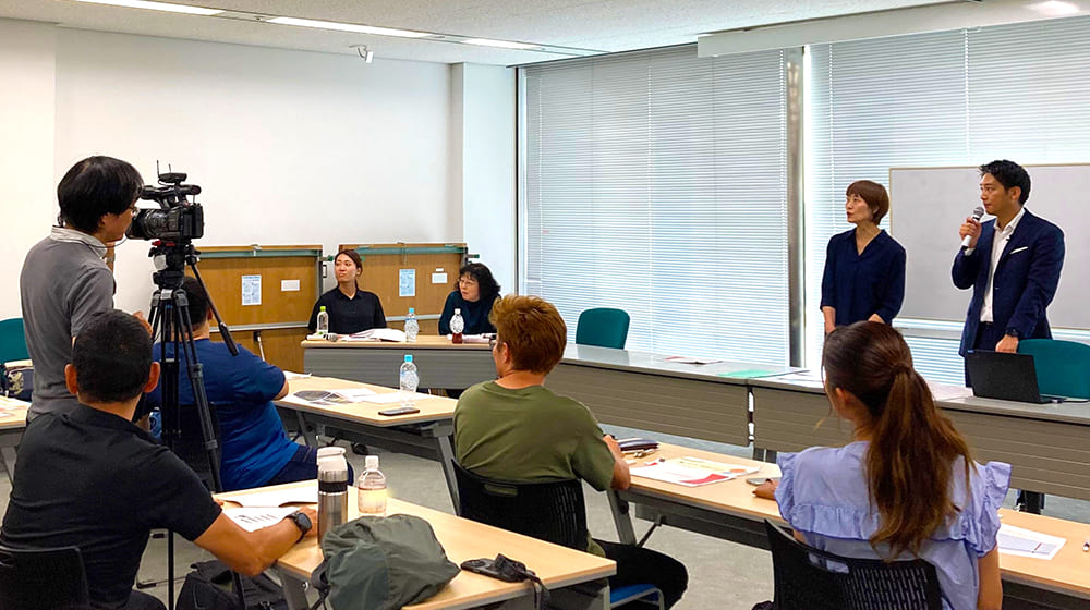 8月28日に、東京研修会として、フジテレビの青嶋達也アナウンサーと堀池亮介アナウンサーが講師として協力しました。