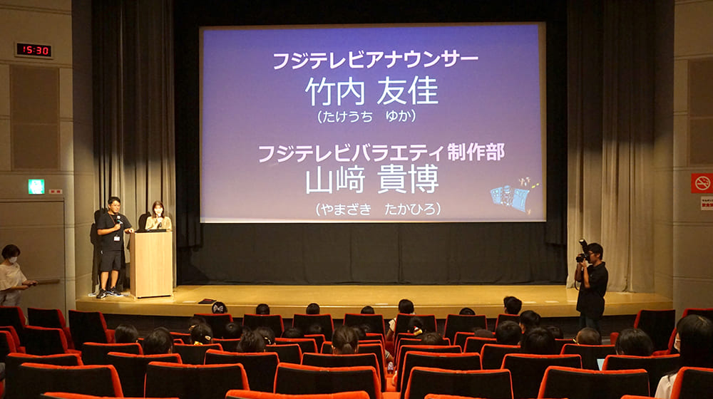 奈良の観光について研究を進める中、「奈良県はPRがうまくないのではないか」「どのようにPRするのが良いのだろうか」などの疑問が生まれ、様々な形で地域の良さを発信しているテレビ局で働く人から話を聞きたいとご連絡をいただき、『かけはしプロジェクト』の特別編として、竹内友佳アナウンサーとバラエティ制作部の山﨑貴博プロデューサーが子どもたちからの質問に答えました。