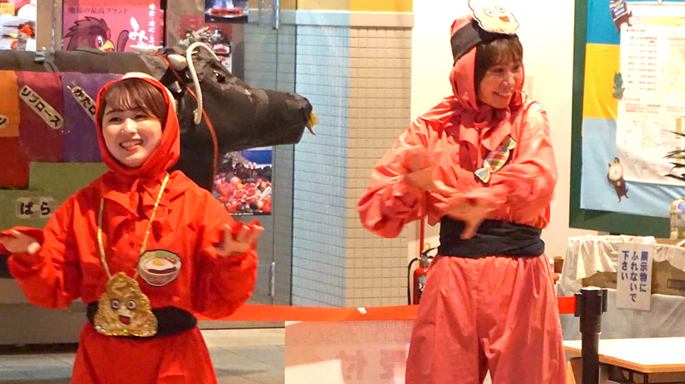 ピンクの忍者に扮して、参加してくれた子どもと一緒に『どっこくん。』の勉強をしました!ついついお菓子など好きなものばかり食べてしまうのは、大人も同じ。元気などっこくんと毎日会えるように、私も食事には気を付けたいと思いました。貴重な経験をありがとうございました!