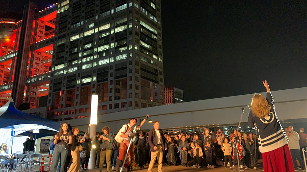 11月はオレンジリボン(児童虐待防止)推進月間。11月4日・5日の両日お台場エリアを中心に開催された『第22回ドリーム夜さ来い祭り』はオレンジリボンなどSDGs推進を掲げており、フジテレビはお祭りと連動して1日から5日までの5日間、社屋イルミネーションAURORA∞をオレンジ色に点灯しました。オレンジの社屋をバックに、カラフルな衣装に身を包んだ踊り子たちの掛け声が夜空に響き渡りました。