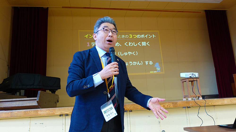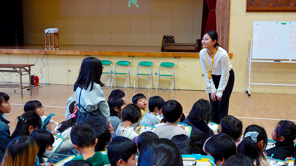 卒業生と知ったこどもたちからは驚きと嬉しさの混じった歓声が!青嶋アナと松﨑アナの熱い授業をみんな楽しんで受けてくれました。