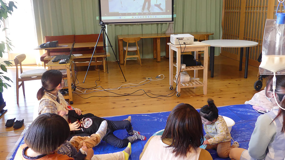 当日の子どもたちは、映像から見える、真っ白な世界に興味しんしん、子どもたちからは、「クマはいるのかなあ?」「ゆきがいっぱいあって困ることないのかなあ」など、質問を投げかけましたが、都度それに応えてくれたのが、嬉しそうでした。