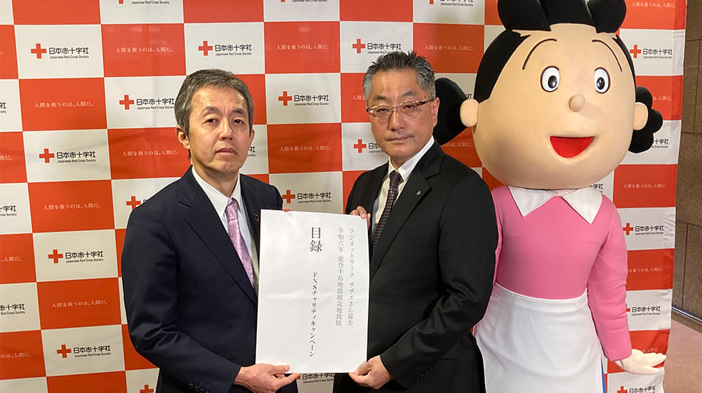フジテレビ系列28局は、2024年1月1日に発生した令和6年能登半島地震の被災地救援のため、1月5日から2月15日まで、「フジネットワーク サザエさん募金」を実施、日本赤十字社への贈呈式が、2月29日に行われました。