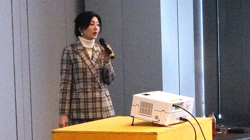 講師は日本ユニバーサルマナー協会と株式会社ミライロで活躍する薄葉 ゆきえさんが務められました。薄葉さんは幼少の頃、肺炎にかかり、その後遺症で特発性の感音性難聴と診断され30代半ばで失聴されましたが、当事者の視点を活かし聴覚障害のある人との向き合い方を学ぶユニバーサルコミュニケーション研修を開発するなどされ、全国各地で精力的に講演を続けていらっしゃいます。