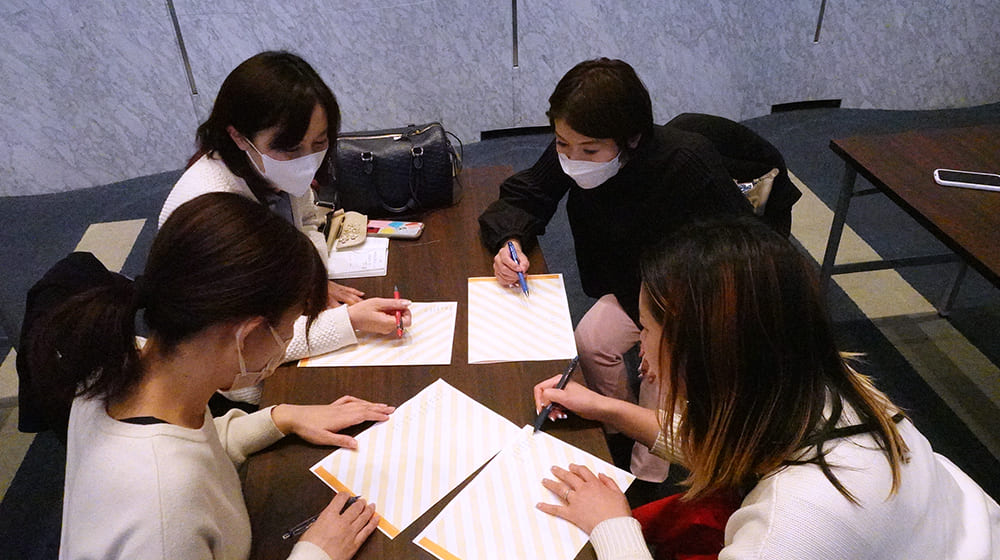 講習会では、薄葉さんご自身の実体験も交えながらお話しして下さり、視覚障害や聴覚障害の方、そして高齢者などの視点に立ち、どうやったら適切な声かけやコミュニケーションを取って行くことができるかなどについてとてもわかりやすく説明して頂きました。講習会では参加者がグループになって話し合う機会が何度も設けられ、皆、話し合った内容を積極的に発表する姿が印象的でした。