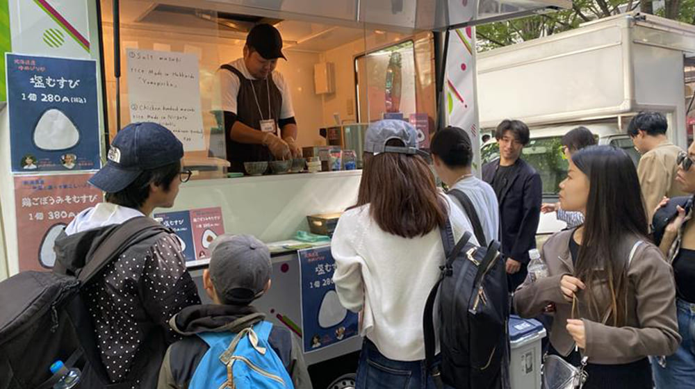 さらには、日本料理店を営む笠原シェフとコラボしたおにぎりも2種類考案!キッチンカーで販売しました。