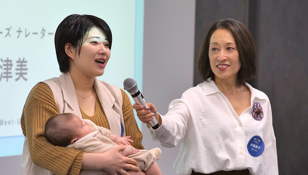 番組のナレーターを務める尾上菜美津美さんは、生後3か月のベイビー♪とともに登壇し、「この子の未来のために今、私たちに何ができるかを考えたい」と語りました。
