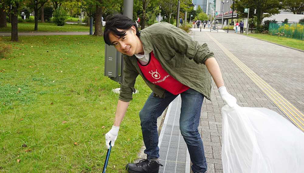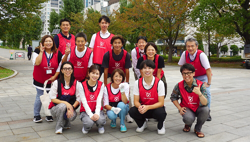 臨海副都心に事業所がある会社や団体で構成されている「東京臨海副都心まちづくり協議会」では、環境関連事業として定期的に『清掃キャンペーン』を行っており、フジテレビも毎回参加をしています。