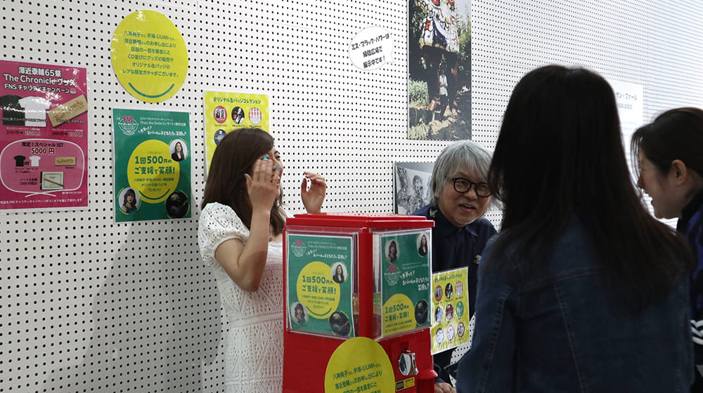 会場では、出演者による特製の限定バッジが販売され、売り上げは寄付に充てられたほか、募金箱にも多くの寄付をいただきました。