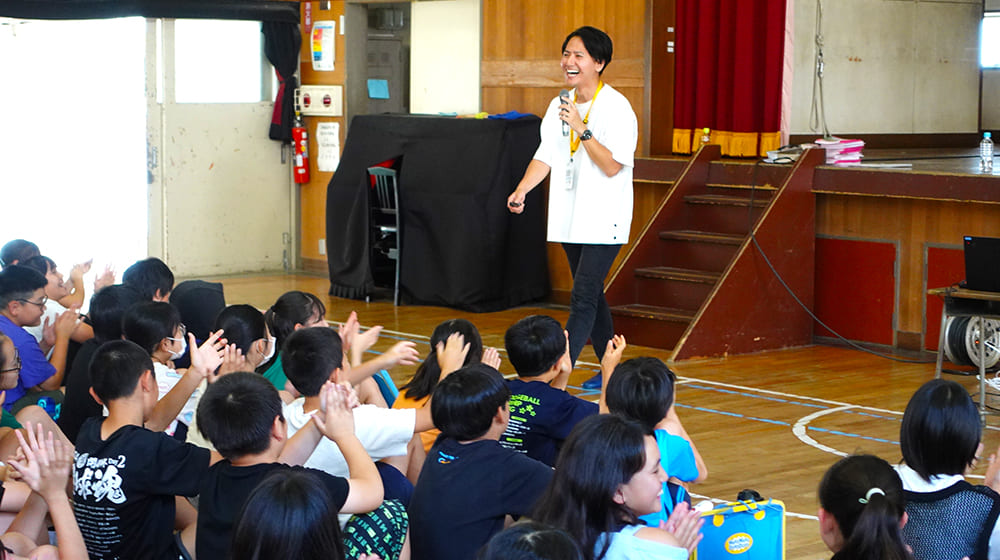 体育館に入ってくる子どもたちの「こんにちは!!」という素敵な挨拶で、初めての『あなせん』は楽しい授業になる予感がしました。