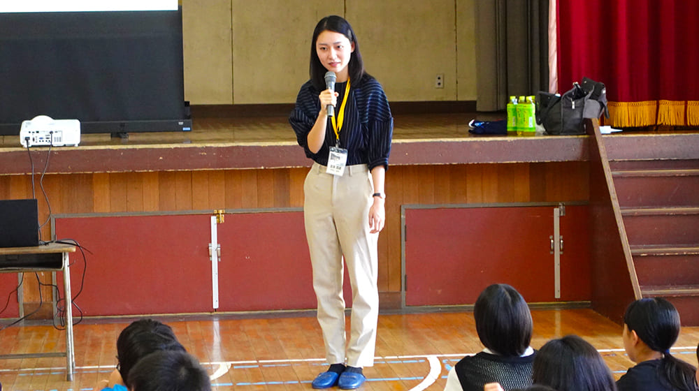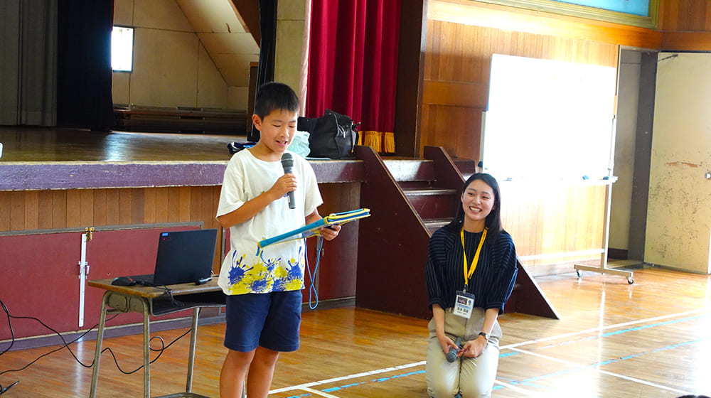 姿勢や口の開け方、表現の仕方など、一気にたくさんのことを教えたにもかかわらず、すべて完璧に実践していました。人前に立つことはすごく緊張することなのに、臆せず発表する子どもたちに、素直にすごいなと感心しました。私も見習います。