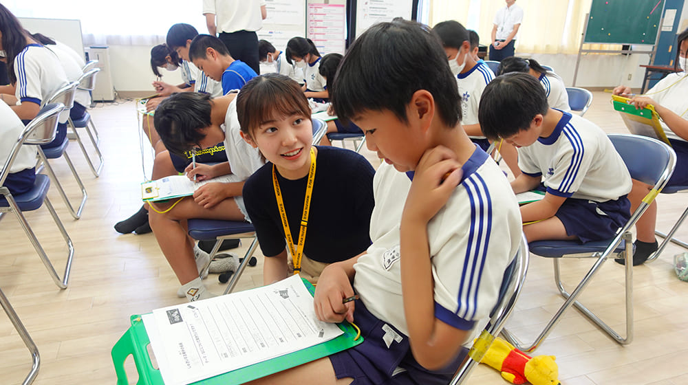私が特に嬉しかったのは、スピーチを1人ずつ行う場面で、最初は発表することに躊躇していた児童の1人が勇気を出してスピーチをしてくれたことです。手元のメモにはインタビューで聞いた情報をびっしりと書いているのに、なかなか発表の手が上がらなかった彼。