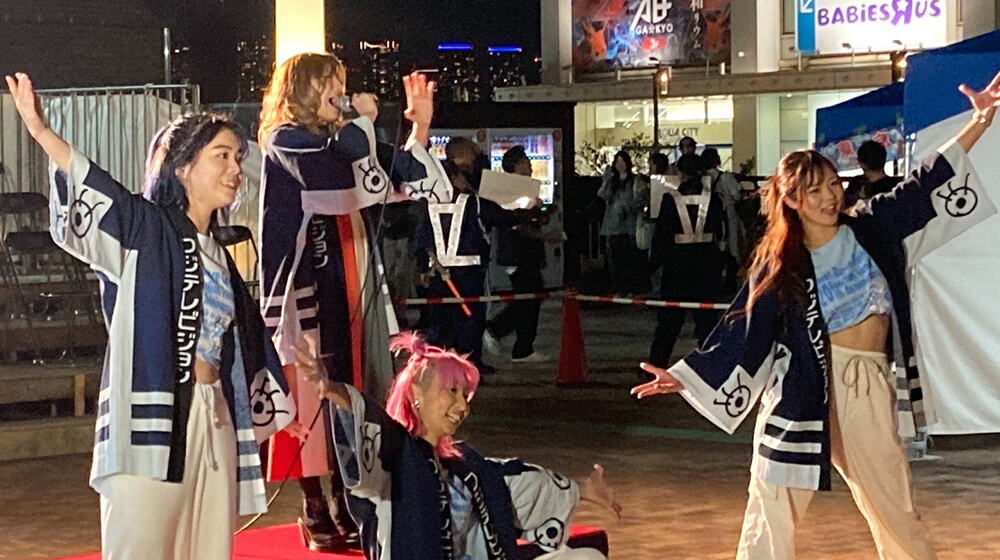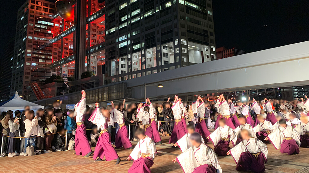 11月はオレンジリボン(児童虐待防止)推進月間です。フジテレビは、今年も『ドリーム夜さ来い祭り』と連動し、11月1日から3日までの3日間、社屋イルミネーション「AURORA∞(オーロラ)」をオレンジ色に点灯しました。社屋をバックに、色とりどりの衣装に身を包んだ各チームが熱気あふれる踊りを繰り広げました。