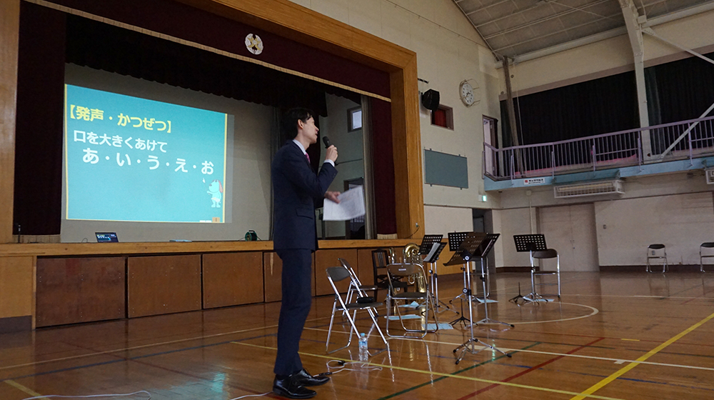 まず最初に私が、普段『あなせん』でやっている伝わる声についての授業を行いました。