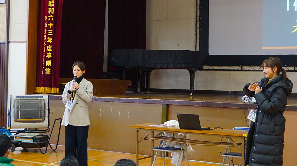 12月13日、所沢市立林小学校で出前授業『あなせん』を開催しました。今回の先生は、宮司愛海アナウンサーと藤本万梨乃アナウンサー。