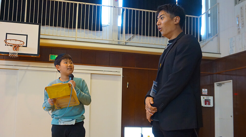 山本アナの声に負けない元気な声が体育館に響き渡りました。