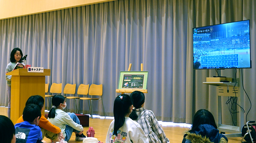 音読については、プロ野球の実況を酒主アナと一緒に担当し、実際の中継映像を見せて実況とはどんなものなのかをイメージしてもらってから練習するようにしたところ、子どもたちそれぞれのイメージを持って練習に取り組んでくれました。