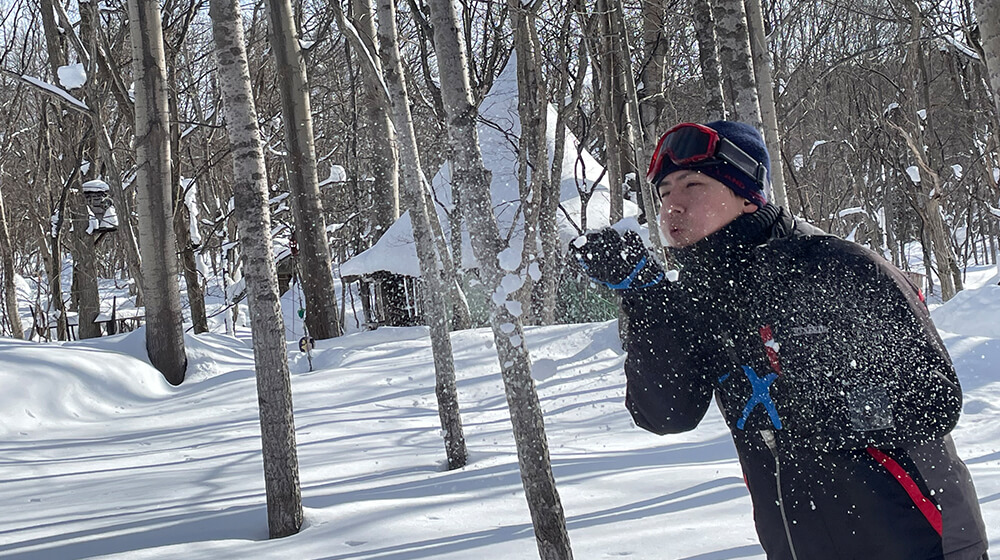 オンラインなので少し伝わりにくいかなと心配していましたが、画面を通して「うわぁ!」「すごーい」と聞こえてきて一安心! そして最後には、事前にお送りしていたキャンプ場の新雪を一緒に触って楽しみました! 雪だるまを作る子や、あまりの冷たさにびっくりする子など、反応はそれぞれでしたが、普段はなかなか味わえない非日常の経験を通して子どもたちの心が動く様が見えて、とても嬉しく思いました。
