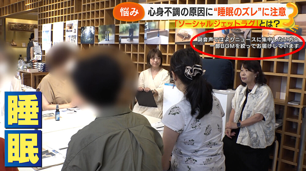 月曜~金曜朝8時14分から放送している情報番組『サン!シャイン』では、目や耳の不自由な方や、生活騒音の中での“ながら視聴”など、様々な視聴環境にある方のために、音楽や効果音をしぼり、ナレーションやスタジオトークを聞きやすくした副音声放送を実施しています。高齢者、補聴器を使うなど聴覚や視覚に障害のある方に優しい仕組みです。