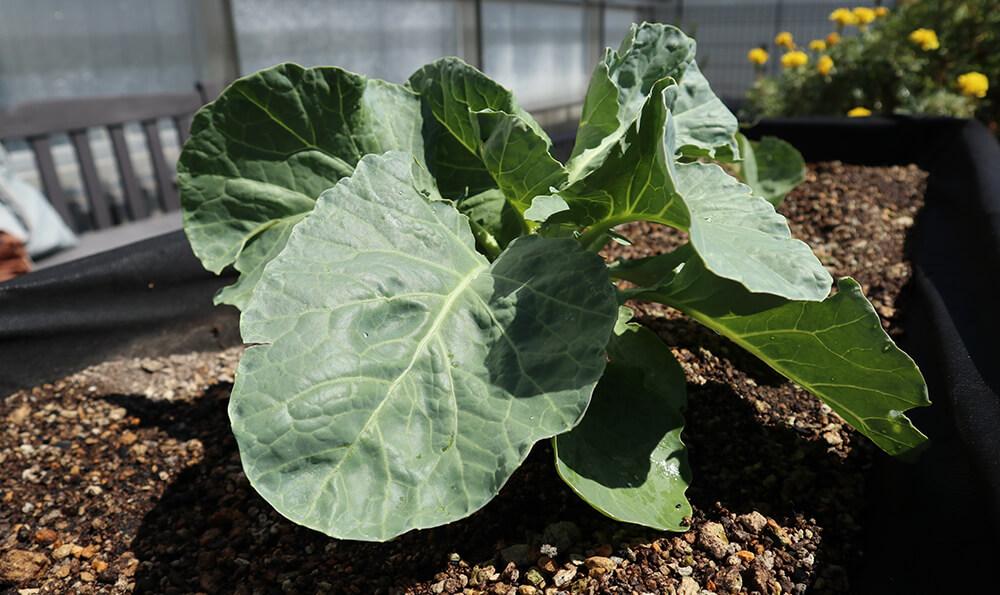 しっかりした葉と濃い緑色が特徴のケール。とても栄養価の高い野菜です。それを知ってか、葉が出るとすぐに虫が食べてしまうことが続いて、なかなか私たち人間が食べることができませんでした。虫が食べる前に収穫しないと!と、見えない虫との戦いがはじまり、早め早めに収穫。サラダにして食べたところ力強い味がして、すっかりケール・ファンになりました。