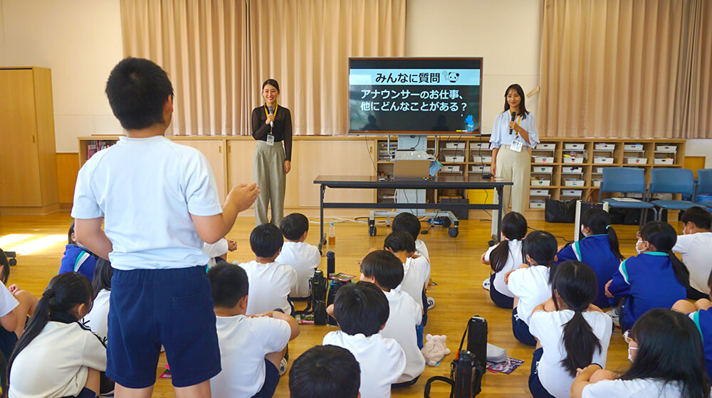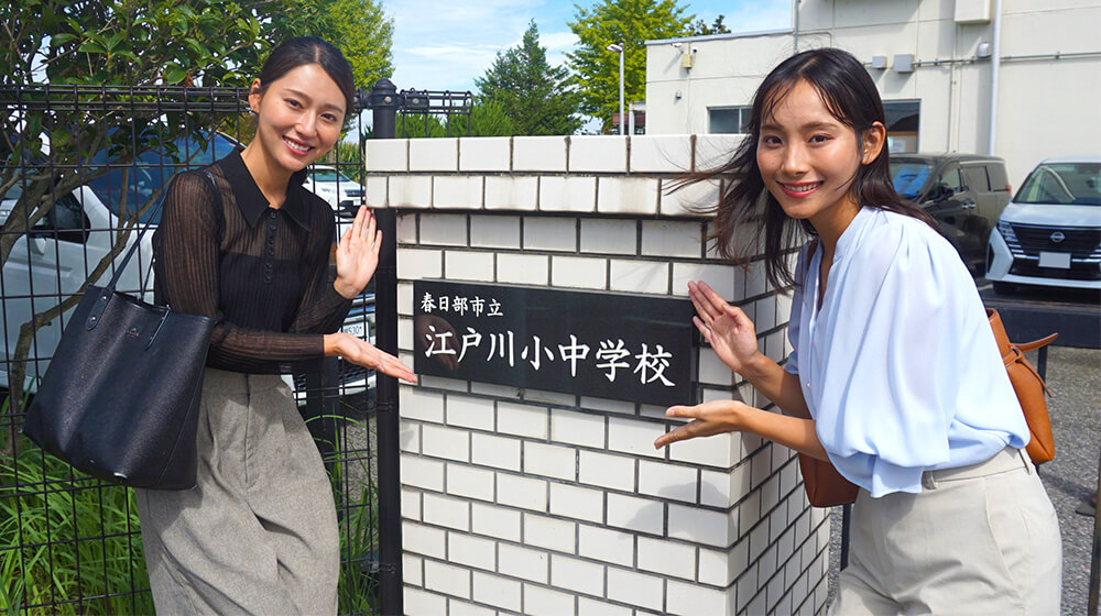 今回は石渡アナウンサーと埼玉県の春日部市立江戸川小中学校で「インタビュー&スピーチ講座」を行いました。