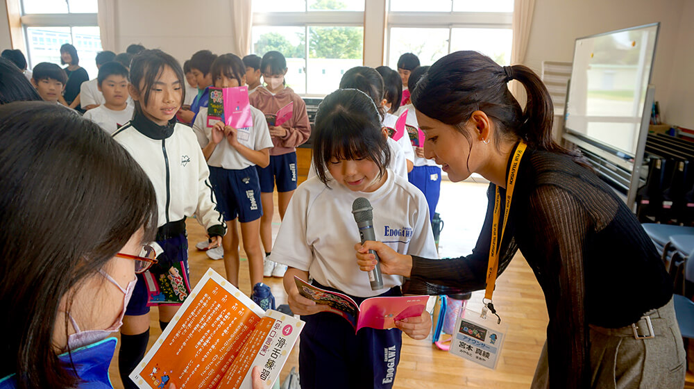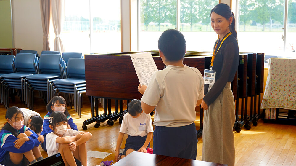 発声練習から滑舌練習まで積極的に参加するだけでなく、すぐに習得していく子どもたちの姿に、教えに来ている私が良い刺激を受けていました。
