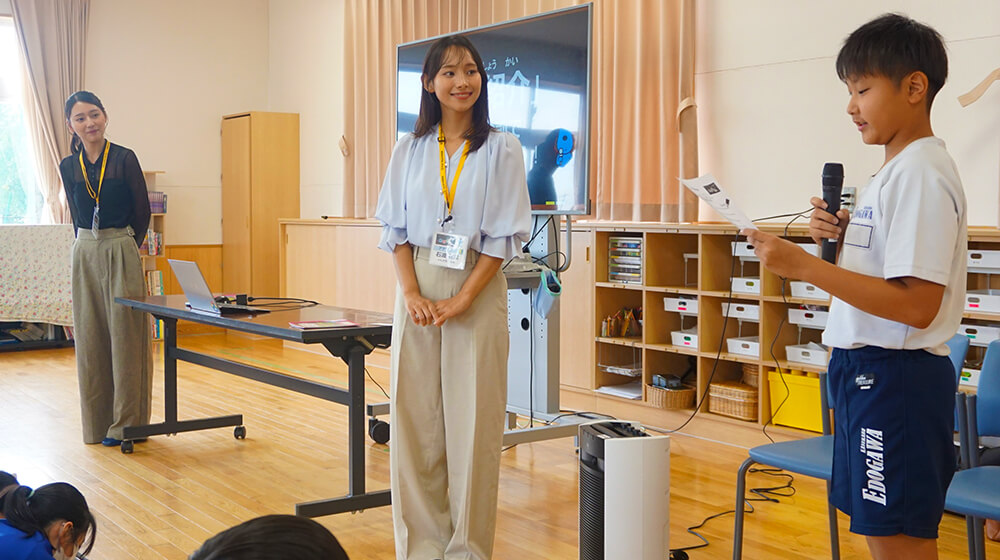 はじめは少し緊張しているように見えたみんなも、講座が始まると積極的に手を挙げ、笑顔で私たちの話を聞いてくれました。滑舌練習の難しい早口言葉も果敢にチャレンジする姿をみて私も学びの多い時間でした。