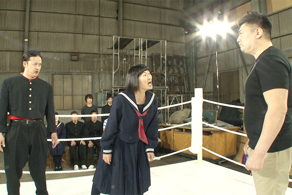 たんぽぽから、1日お付き合い願いたいという旨の手紙に従い、たどり着いた倉庫。そこにいたのはリングの上に立つ加藤浩次役のオバアチャン赤枝と、山本圭壱役のマッスル坂井。そして、それを取り囲むめちゃイケメンバー風の面々。これはいつぞやのあのシーン。それが忠実に再現されていく・・・。たんぽぽは何を表現し訴えたいのだろうか?