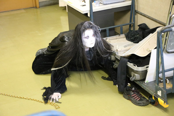 控室廊下で試合前の選手を待ち構え、報告と赤DVDをプレゼント。井上京子選手、伊藤薫選手、ダンプ松本選手、豊田真奈美選手らは当時から比べて選手たちが大人になったと安心していると、鎖のすれ合う音が・・・!?鎖を引きずりながら現れたのはアイガー選手。不気味な表情をして岡村・加藤に襲いかかる。やはり一筋縄では行かない女子プロの世界!