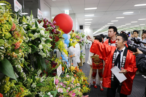 ダイバーシティ内特設会場へ戻り、西くんと共にキャンペーンを行っていたチャイナナイト光浦を引き連れ、新スタジオへ向かう。新スタジオには、1年間携わってきた多くの方々からのお祝いの花束が!花のいい匂いに包まれながらいざ新スタジオへ!