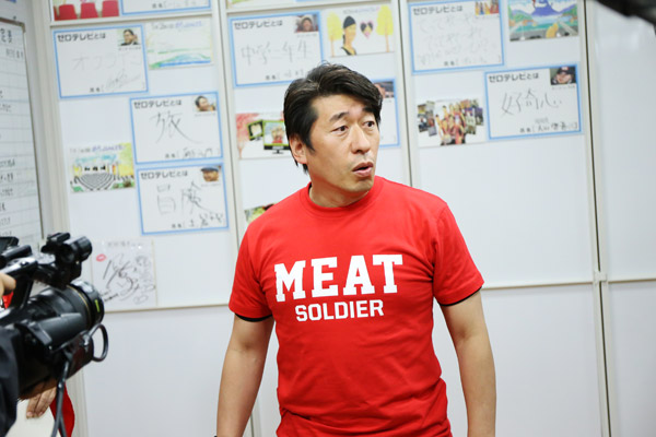 購入してくれた方々と触れあいながら和やかに進む握手会。写真に一緒に映りながらも順調にハガシの役割をこなす加藤。そんな中、一昨日のニコニコ超会議でもお会いした米軍イチのめちゃイケファン・ダニエルさんも来場!米軍でジャイアントスイングが流行っていたとのありがたい情報も!“業界の帝王”も記念写真にとせがまれたりもありつつ、夜にまたゼロテレビ新スタジオのこけら落としで戻ってくると言い残して西くんに販売を任せ、次のキャンペーン地・渋谷ヨシモト∞ホールへ移動!