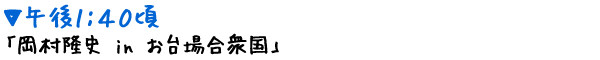 ほとんど休憩できなかった岡村はお台場合衆国へ。