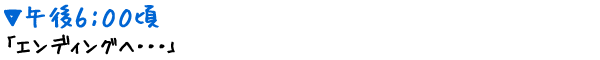 BEGINとのライブですっかり満足した岡村。ゼロテレビスタジオに戻ってメイクを落とし、終了体制に入る・・・が、何か大事なことを忘れている?そう。それはずっと走り続けているカーニバルゆきえ!