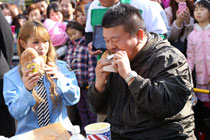 「G級グルメパーク」では、三中オススメのG級グルメを試食。ここでG級グルメの「G」に違和感があるとトータルテンボスが異を唱える。