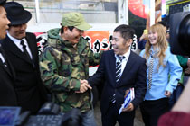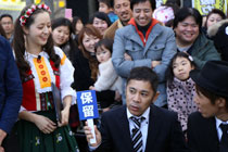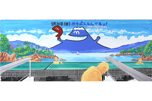 休日で賑わうお客さん、そして極寒の中、2Fテラスのめちゃイケ写真パネルに来場の証しとして無事にサインをすることができるのか!?
