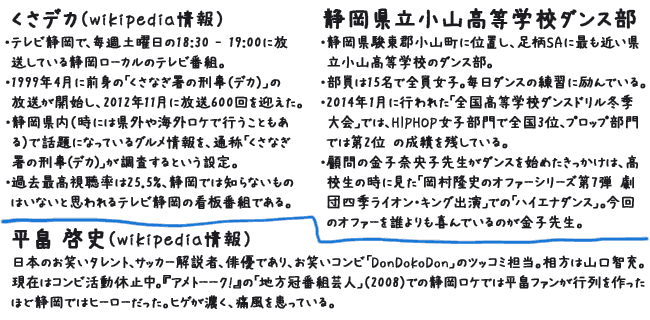 「くさデカ」のメインMCである平畠啓史が合流し、SA2階の足湯カフェに移動し平畠プレゼンツ「めちゃ×2ヌルんでるッ!」のコーナーに!静岡を代表するヌルいゲストは「ハリウッドザコシショウ」「BBゴロー」そして、【アイドル ブス】で検索すると最上位に表示されるご当地アイドル「ORANCHE」が登場。
