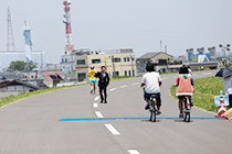 青い空。河川敷堤防沿いの道を金八先生のノリでスタート!